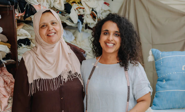 Each pillow is watchfully spun, woven and embroidered by a small mother-daughter led group of women in Tunisia’s capital city, Tunis.