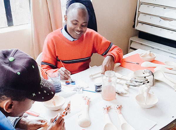 Inspired by Africa’s wild beauty, this eye-catching rhino ornament is a tribute to our company's roots in Kenya. Each piece is hand-carved from sustainably sourced jacaranda wood and painted in delicate detail by skilled Kenyan artisans. Whimsical and full of character, it captures the spirit of the savanna while celebrating the artistry and heritage of its makers. Every purchase supports fair wages, steady employment, and access to interest-free loans — creating meaningful impact through timeless design.