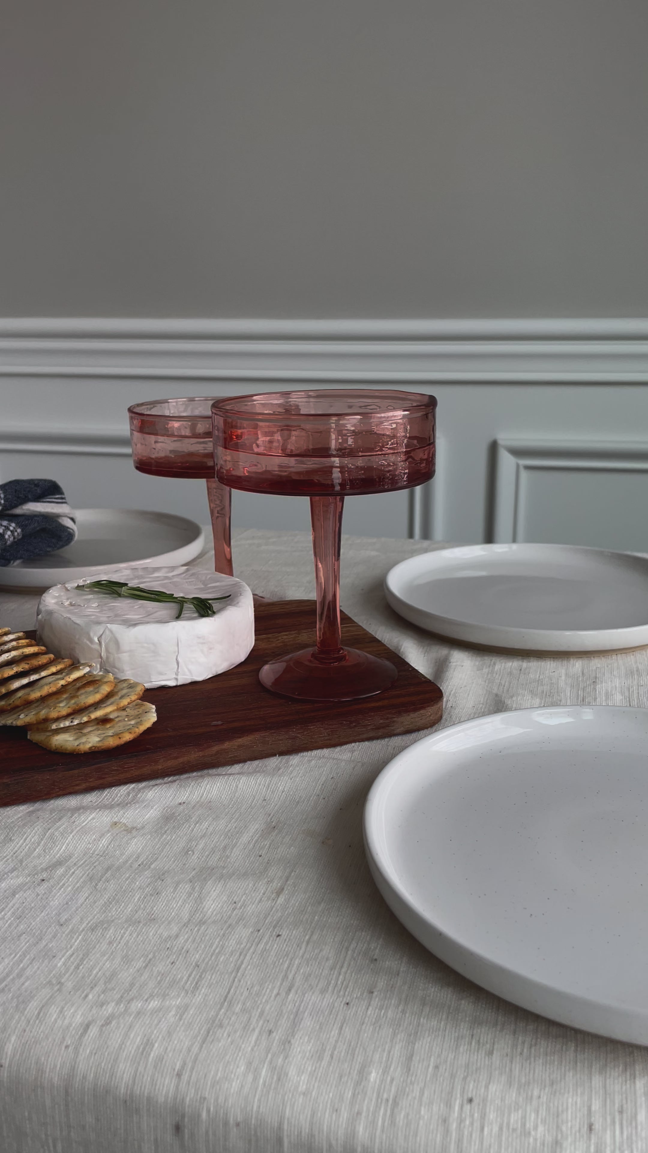 Handblown with a stunning hammered finish, these coupe glasses take your cocktails and mocktails to the next level. Crafted with care at a woman-owned business, each is ethically made from 100% recycled glass and are sold as a set of 2 glasses.